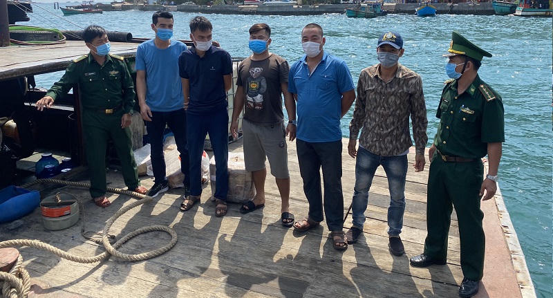 Qua kết quả điều tra bước đầu, các đối tượng đều khai nhận đang trên đường vượt biên sang Camphuchia. Lực lượng Đồn BPCK Cảng An Thới đã bắt khẩn cấp 5 đối tượng gồm: Nguyễn Văn Đậu (61 tuổi) nơi ở hiện tại: Dãy Ốc, Vĩnh Hiệp, Rạch Giá, Kiên Giang; Nguyễn Thanh Tâm (41 tuổi) nơi ở hiện tại Đông Trung, Tân Chánh, Cần Đước, Long An; Phạm Văn Phú (46 tuổi) nơi ở hiện tại ấp 1, xã Vĩnh Phước Tây, huyện Cần Giuộc, tỉnh Long An; Vũ Văn Trường (33 tuổi) nơi thường trú Thị trấn Ninh Cường, Trực Ninh, Nam Định và Trần Văn Anh (35 tuổi) nơi thường trú Nghĩa Hải, Nghĩa Hưng, Nam Định là chủ mưu và tổ chức người xuất cảnh trái phép.