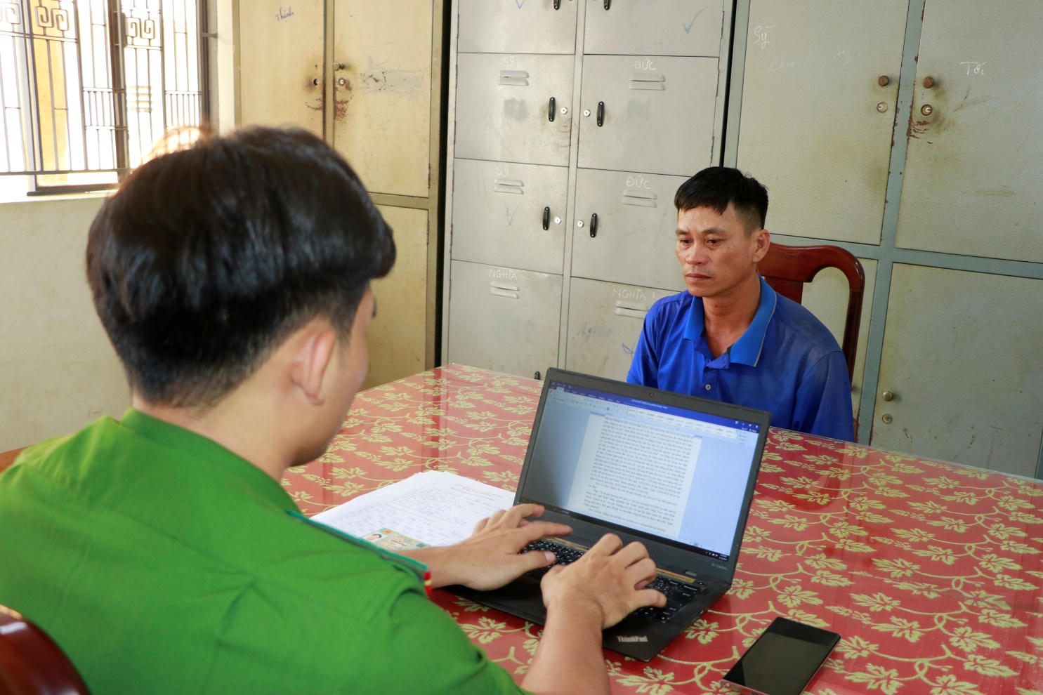 Cơ quan Cảnh sát điều tra Công an TP Đồng Xoài làm việc với đối tượng Lê Đức Thắng. |