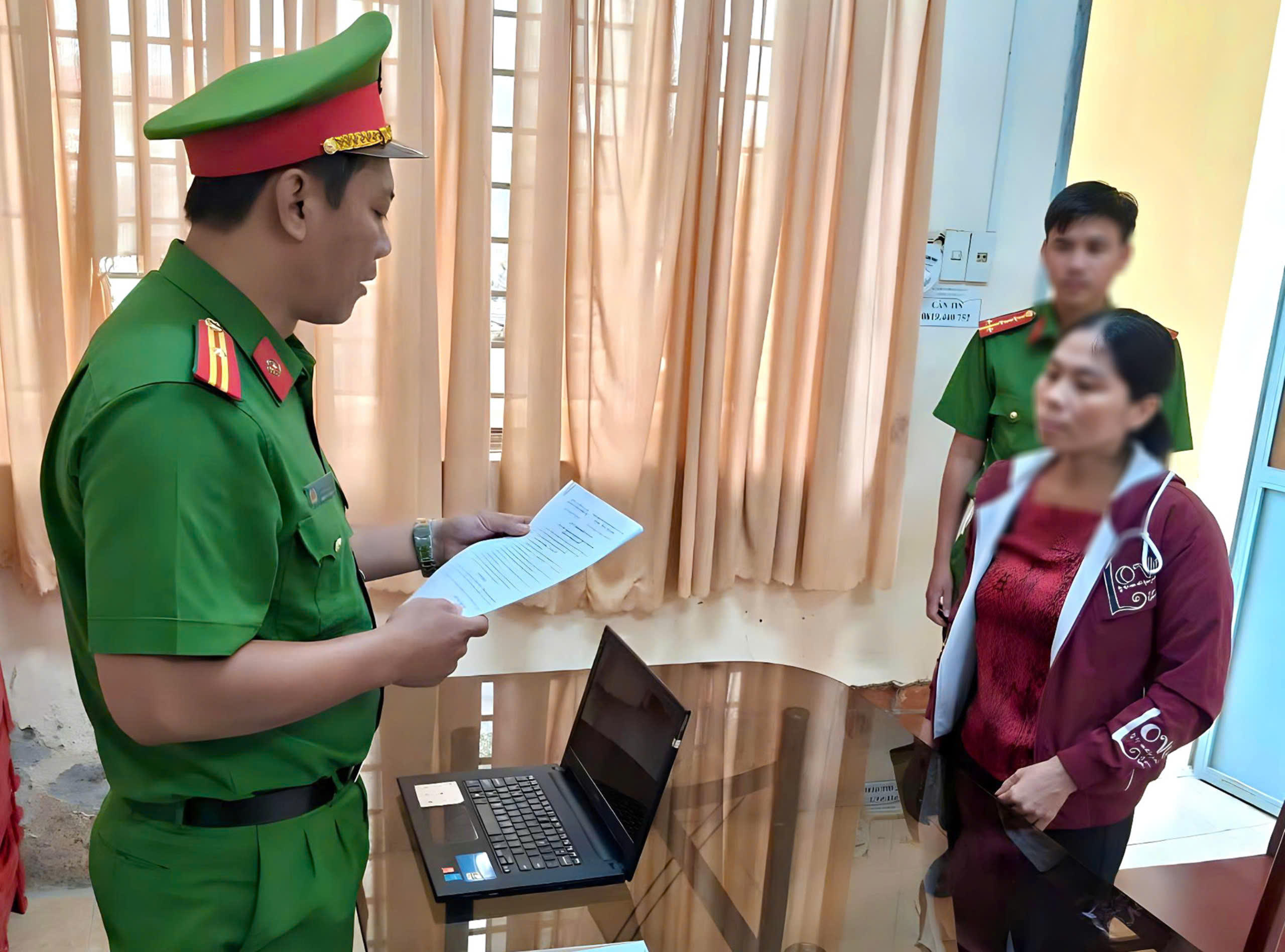 Cơ quan Cảnh sát điều tra tống đạt Quyết định khởi tố bị can Phan Thị Nhiệm. |