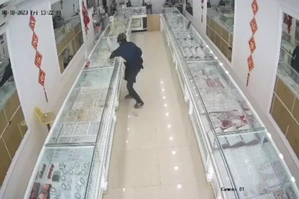Camera ghi lại hình ảnh đối tượng Quân cướp tiệm vàng. |