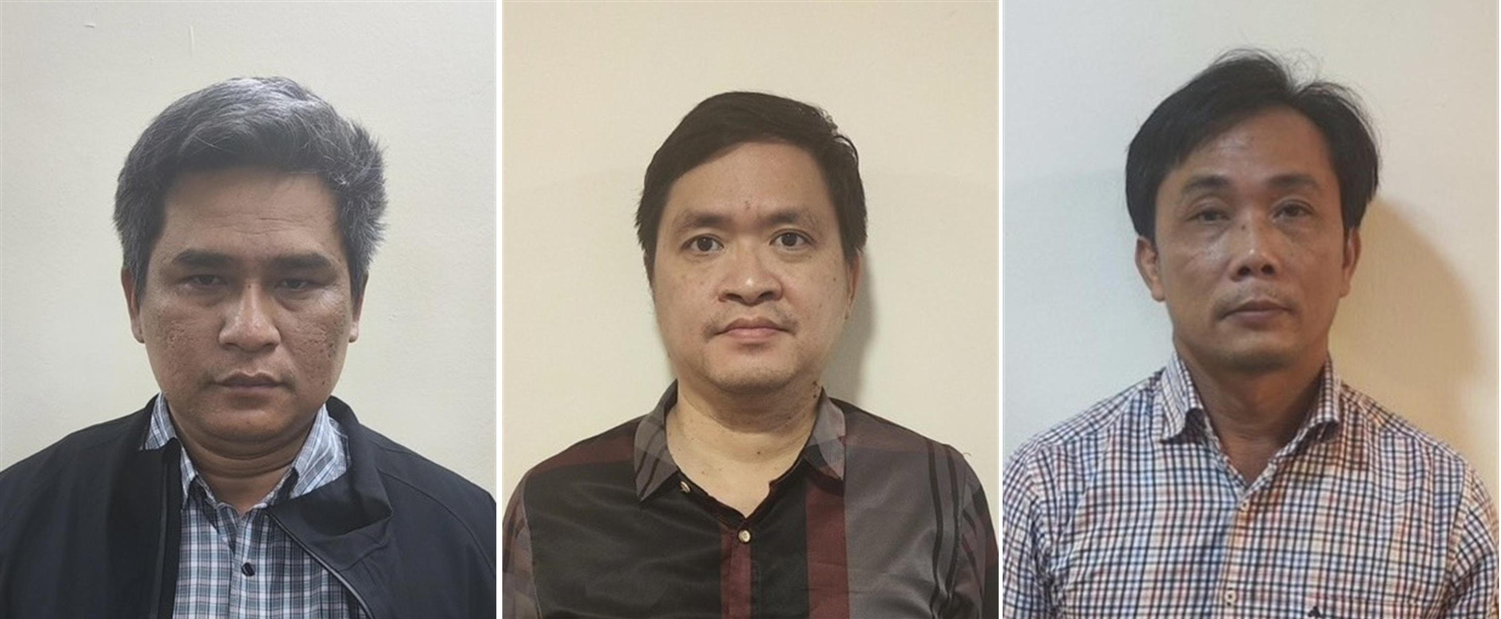 Các bị can (từ trái sang): Ngô Võ Kế Thành, Hoàng Minh Bá, Huỳnh Trọng Nghĩa. Ảnh: Bộ Công an |
