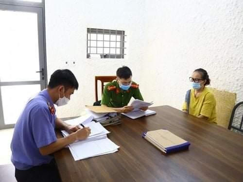 Đối tượng Lê Thị Hiền tại cơ quan điều tra. |