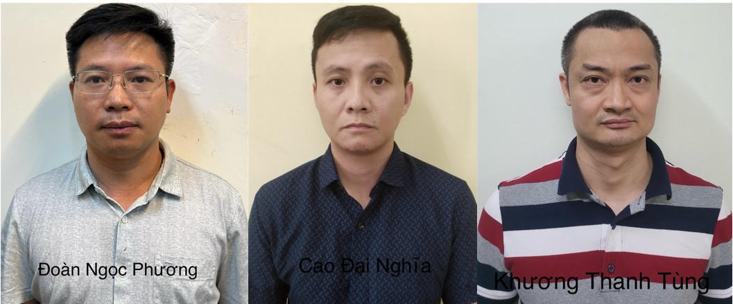 Các bị can (từ trái qua phải): Đoàn Ngọc Phương, Cao Đại Nghĩa, Khương Thanh Tùng. (Ảnh: CACC) |