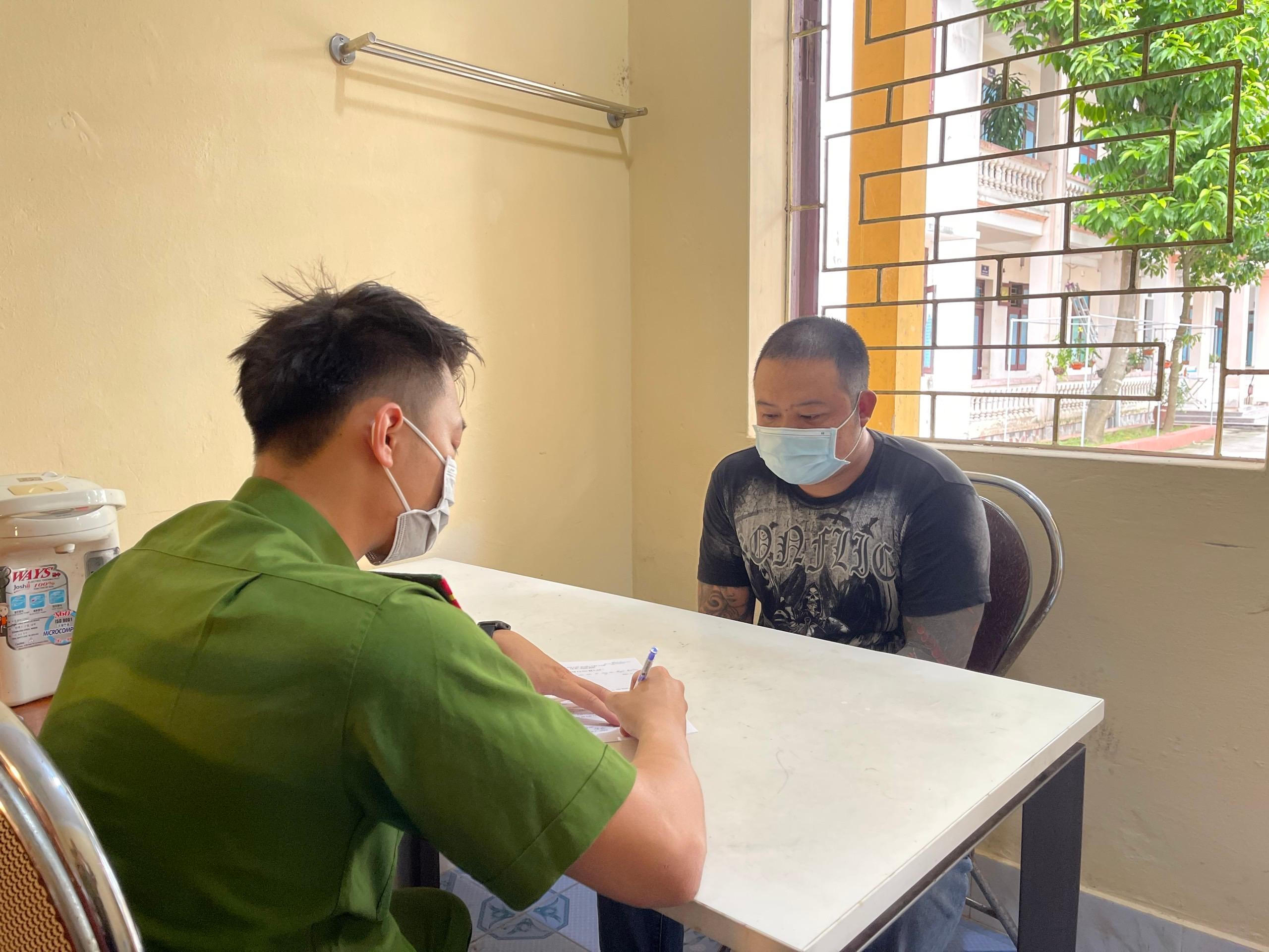 Công an làm việc với đối tượng Phạm Văn Nhân. |