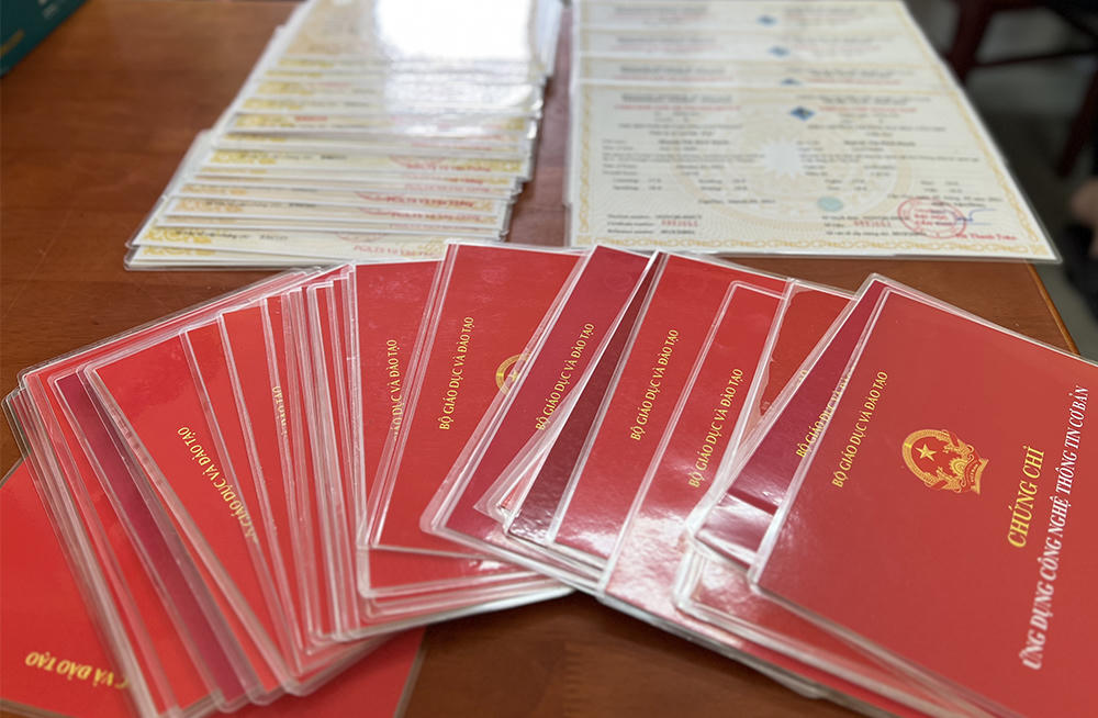 Các Văn bằng, Chứng chỉ giả bị thu giữ. |