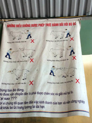 Việt Nam hiện là thị trường xuất khẩu bò lớn thứ hai của Úc, với 178.000 con bò được xuất sang Việt Nam trong năm 2014. Từ cuối năm 2012, phía Úc đã siết chặt việc quản lý giết mổ đối với bò Úc nhập khẩu vào Việt Nam theo quy chuẩn ESCAS. Đây là tiêu chuẩn được Chính phủ Úc đặt ra đối với các cơ sở giết mổ để đảm bảo bò được đối xử nhân đạo và không bị đau đớn.