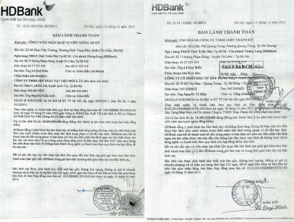 Tương tự, mới đây nhất, hai khách hàng là Cty CP Viễn thông An Đô và CN Cty TNHH Thép Thành Đô cũng khốn đốn bởi các chứng thư bảo lãnh phát hành từ HDBank. Số tiền mà Cty CP viễn thông An Đô (bên nhận bảo lãnh) tối đa là 10,69 tỷ đồng và CN Cty TNHH Thép Thành Đô (bên nhận bảo lãnh), giá trị bảo lãnh tối đa là 15,39 tỷ đồng đều bảo lãnh mua hàng hoá.