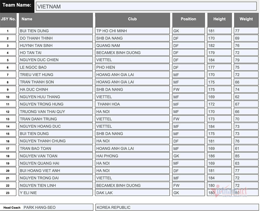 Một quan chức LĐBĐVN (VFF) cho biết, bản danh sách đăng ký với AFC chỉ là tạm thời. “Đây chỉ là danh sách đăng ký tạm theo quy định. Sát giải đấu chúng ta sẽ vẫn có thể thay đổi được. Hiện chấn thương của Đình Trọng đã bình phục nhưng các bác sĩ đội tuyển Việt Nam vẫn theo dõi rất sát sao”-quan chức VFF trên cho biết.