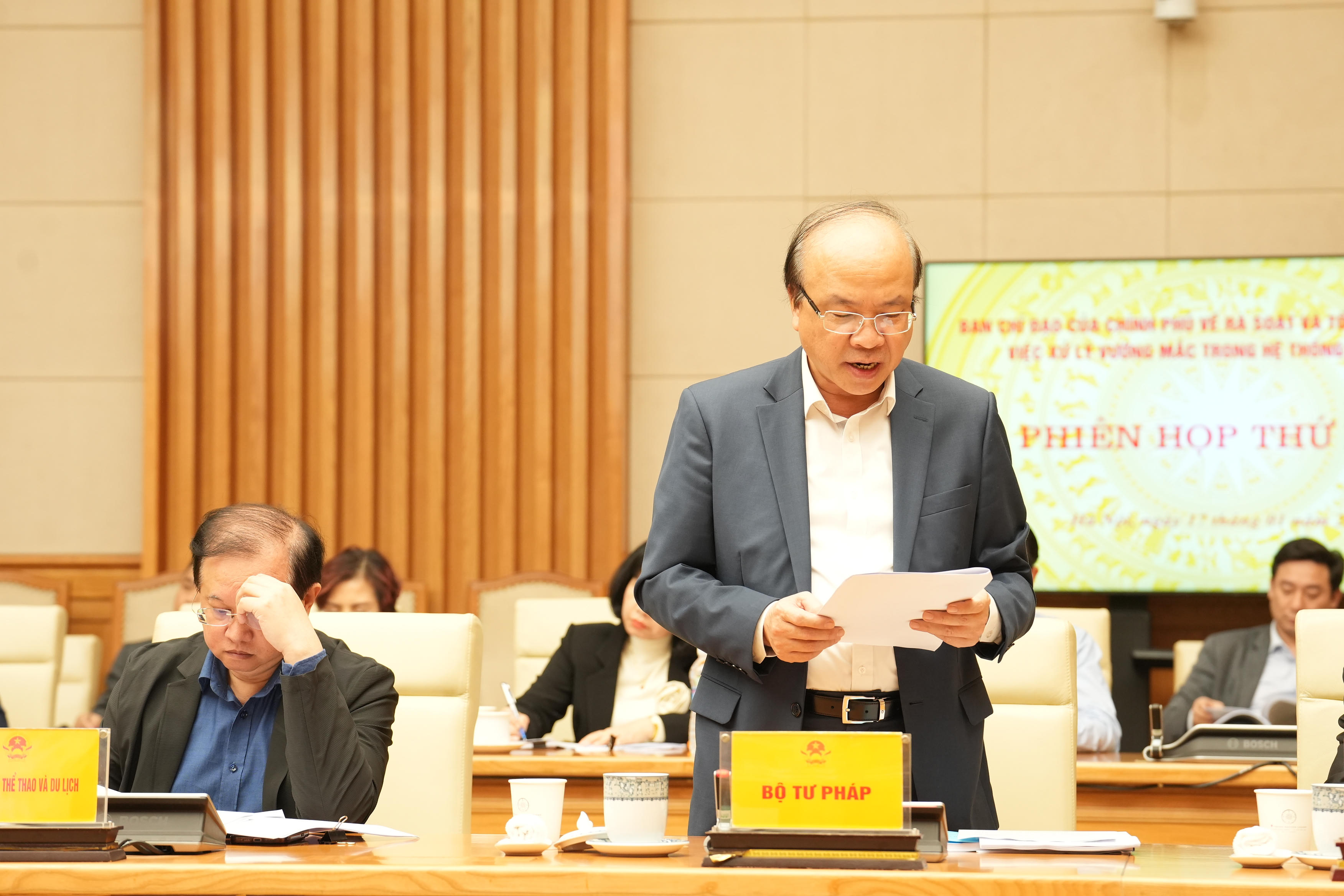 Báo cáo thêm tại Phiên họp, Bộ trưởng Nguyễn Hải Ninh cho biết, Bộ Tư pháp sẽ nghiêm túc tiếp thu đầy đủ ý kiến chỉ đạo của Thủ tướng Chính phủ. Người đứng đầu Bộ Tư pháp sẽ trực tiếp chỉ đạo công tác rà soát, xử lý vướng mắc pháp luật, coi đây là nhiệm vụ trọng tâm, xuyên suốt, bảo đảm thực hiện thực chất, không hình thức.