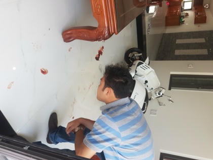 Kết quả khám nghiệm hiện trường cho thấy dưới nền gạch trong phòng khách nhà chị P. có nhiều vết máu, bên cạnh chiếc xe tay ga bị đổ.