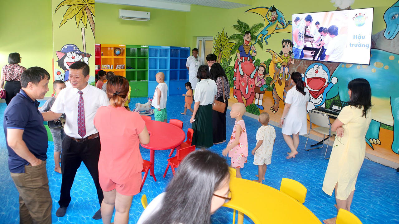Đây là nơi để giúp các cháu có thêm tâm lý vui vẻ, thư giãn, bớt căng thẳng sợ hãi trong quá trình điều trị bệnh, nhất là trong môi trường bệnh viện. |