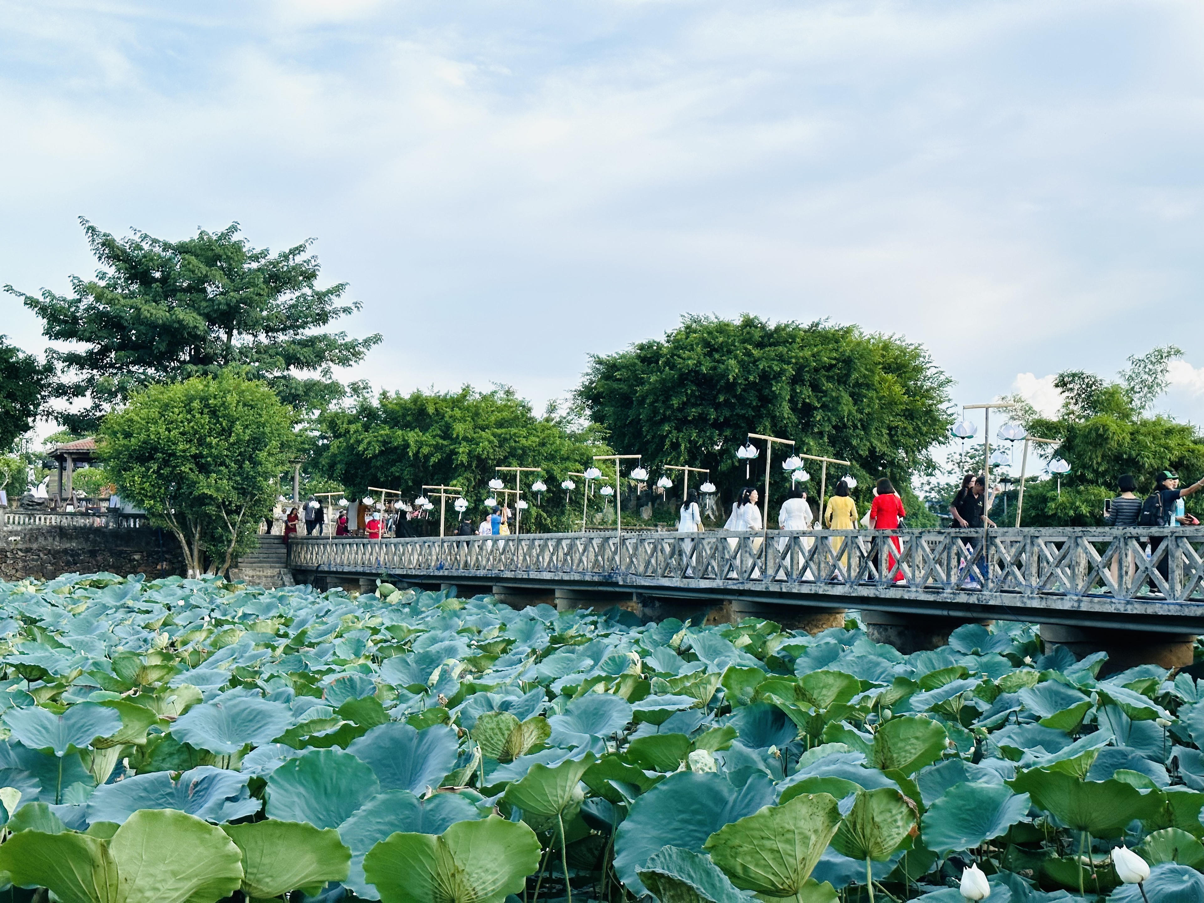 Đông đảo người dân và du khách đến ngày hội Sen Huế. |