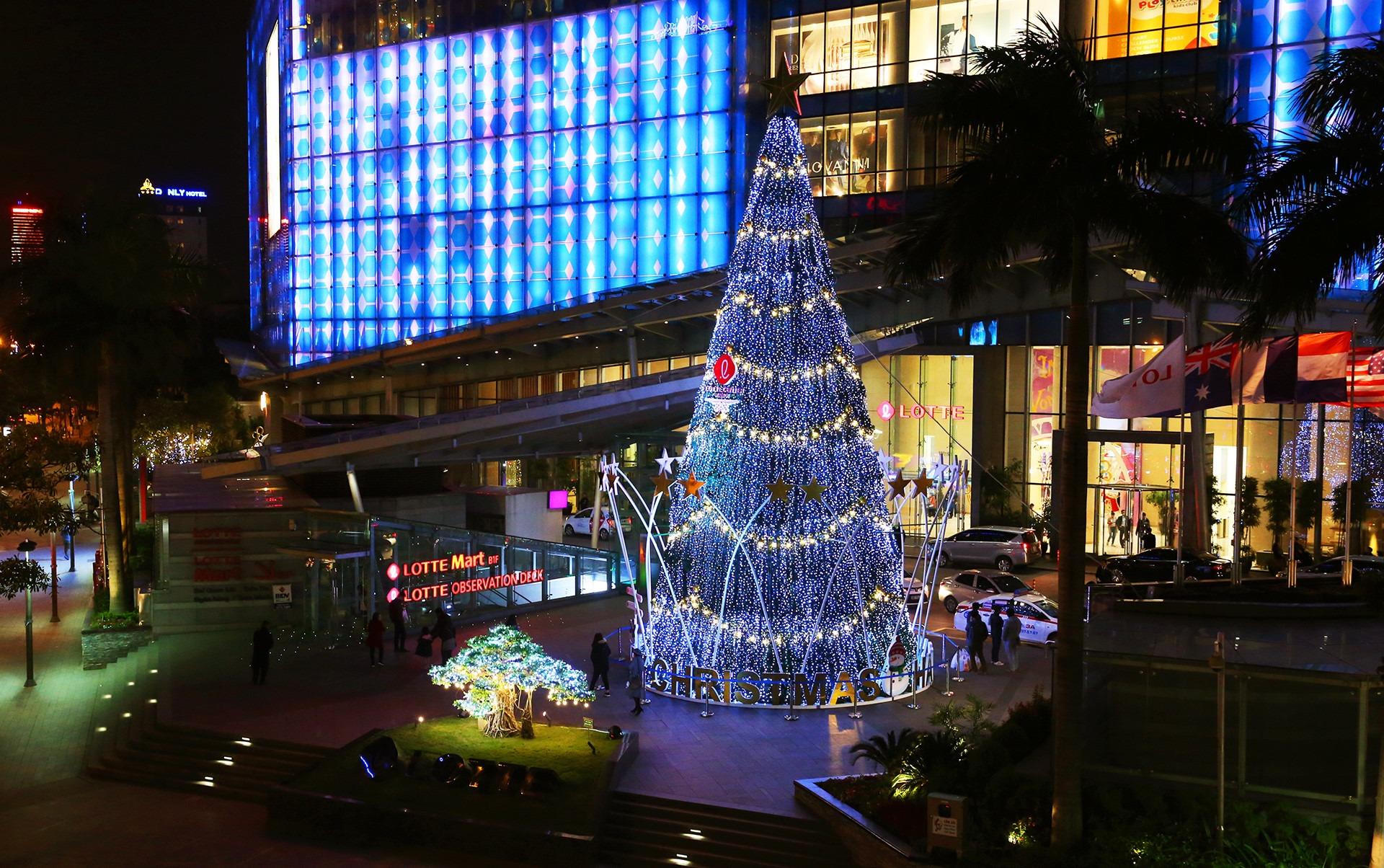 Cây thông noel khổng lồ đã được dựng lên tại Khu trung tâm thương mại Tràng Tiền Plaza, trên đường Tràng Tiền (quận Hoàn Kiếm) thu hút đông người tới thăm quan và chụp ảnh lưu niệm.