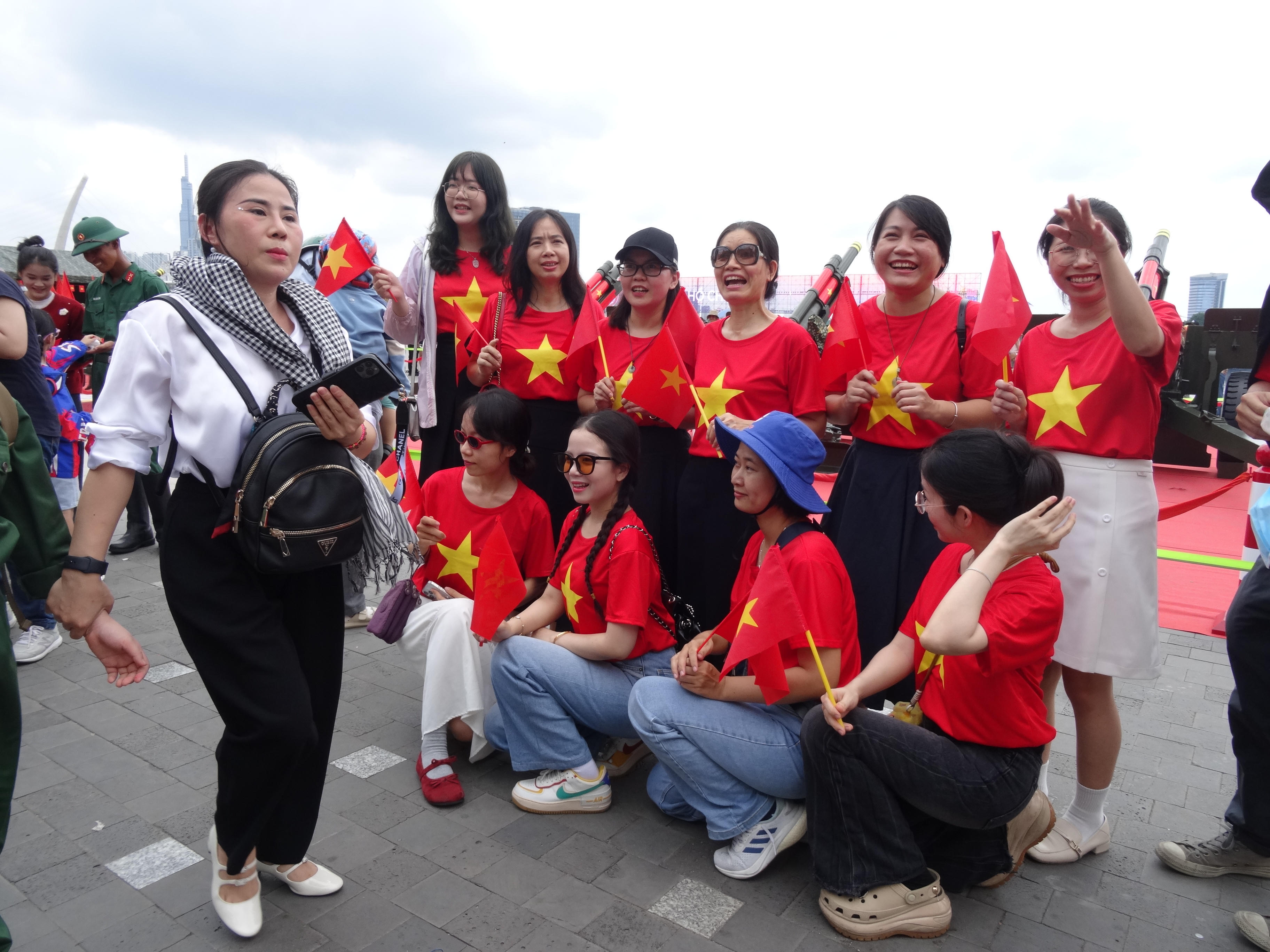 Chị Nguyễn Thị Hoa (ngụ quận Tân Bình) xúc động chia sẻ: “Tôi sinh ra sau năm 1975 nhưng mỗi lần đến ngày này là trong lòng cứ dâng trào cảm xúc. Dẫn con gái đến xem diễu hành, tôi muốn con hiểu rằng để có ngày hôm nay là biết bao xương máu cha ông đã đổ xuống. Chúng ta phải biết trân trọng hòa bình, tự do".