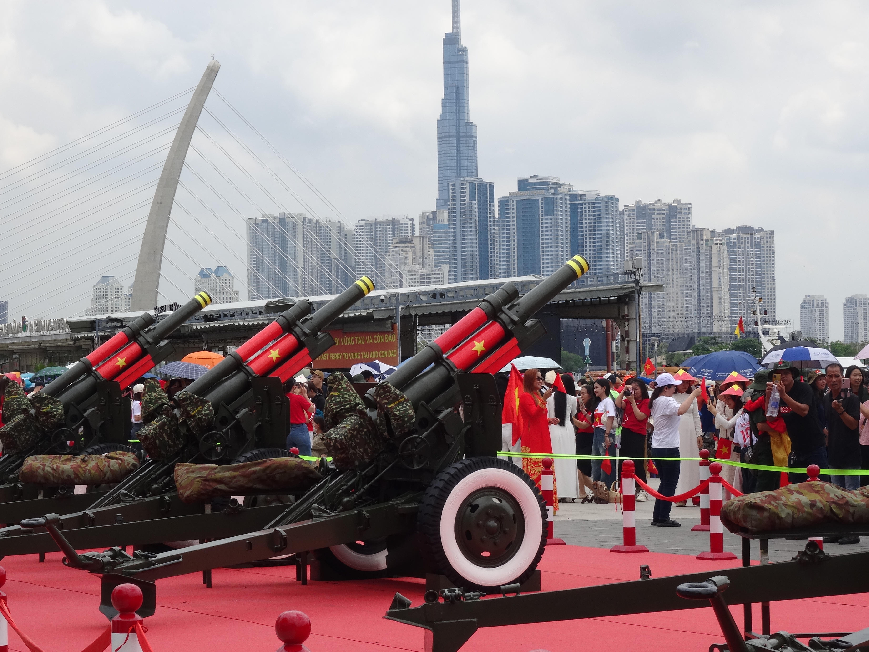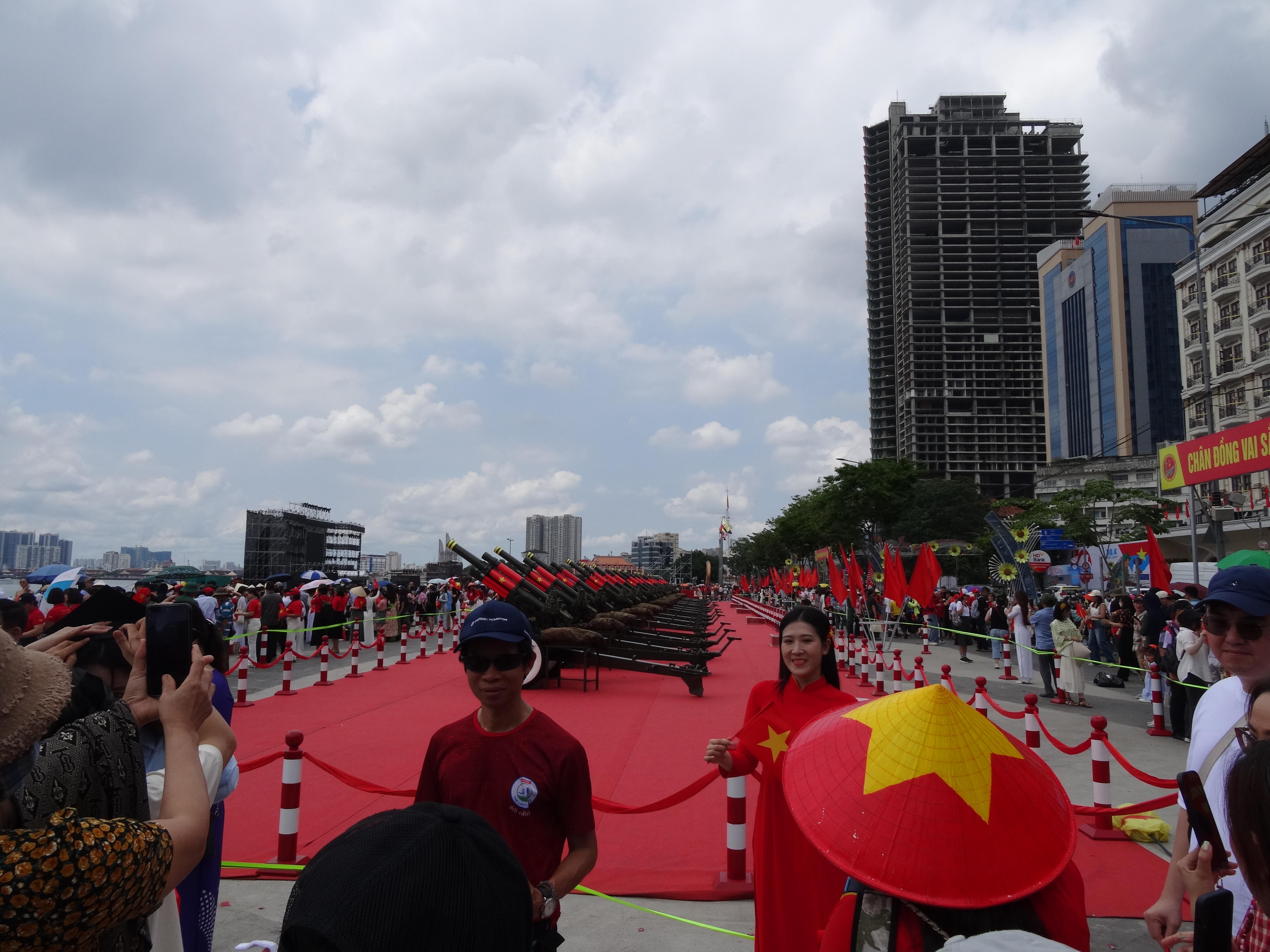 Cách đó không xa, tại Bến Bạch Đằng – nơi có nhiều khẩu đại bác đang chuẩn bị cho thời khắc đón chào ngày 30/4 lịch sử, dòng người cũng đổ về không ngớt. Nhiều bạn trẻ chọn nơi đây để chụp ảnh, lưu lại những khoảnh khắc đáng nhớ. Các cụ ông cụ bà kể cho con cháu nghe chuyện chiến tranh, những ngày kháng chiến gian khổ nhưng đầy kiêu hãnh.