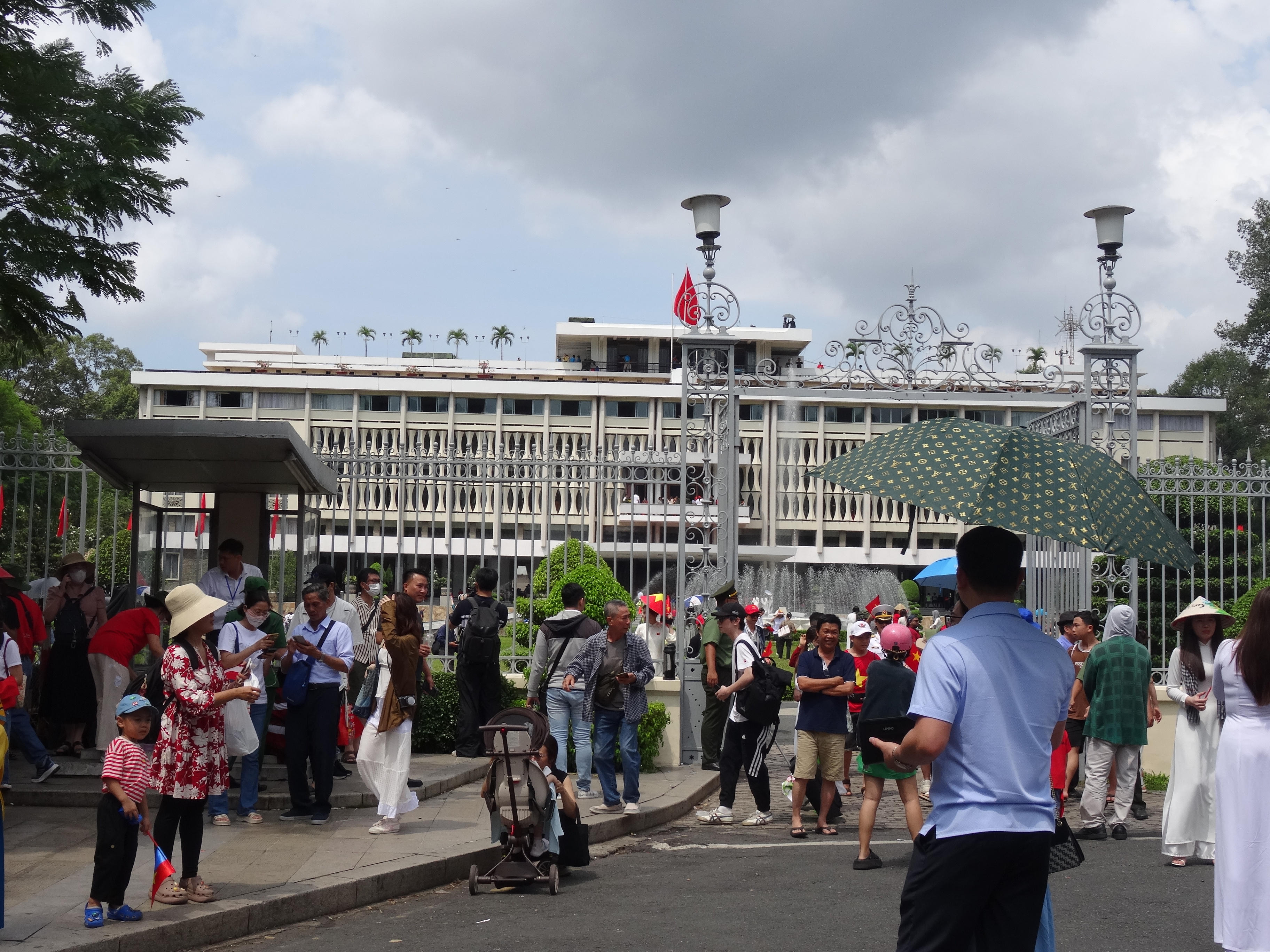 Từ sáng sớm 26/4, nhiều người dân đã tề tựu trước Dinh Độc Lập để tham quan, chụp ảnh. |
