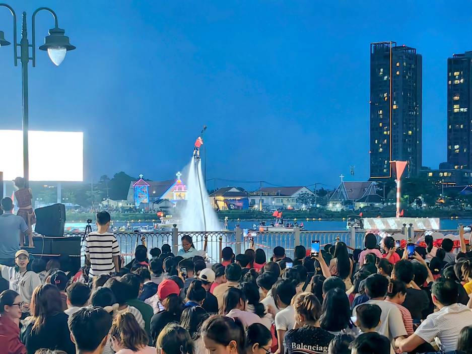 Bên cạnh đó, khu vực sông Sài Gòn, đoạn từ cầu Ba Son đến Bến Nhà Rồng, diễn ra hoạt động trình diễn thể thao dưới nước gồm: dù lượn phun pháo hoa, thuyền buồm sailing, lướt ván, SUP, thuyền rồng, moto nước, ván phản lực, trình diễn bay bằng flyboard, ván phản lực pháo hoa, trình diễn chiếu sáng nghệ thuật;
