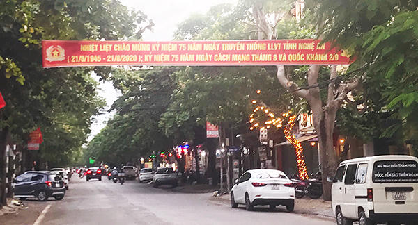 (PLVN) - Cờ hoa, băng rôn, biểu ngữ rộn ràng khắp các tuyến phố của tỉnh Nghệ An hướng về ngày lễ kỷ niệm 75 năm ngày cách mạng tháng 8 thành công và Quốc khánh nước CHXHCN Việt Nam...