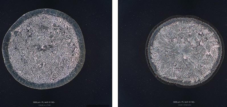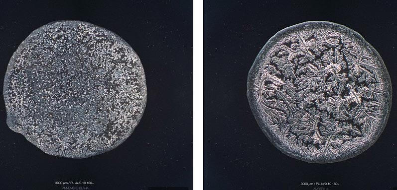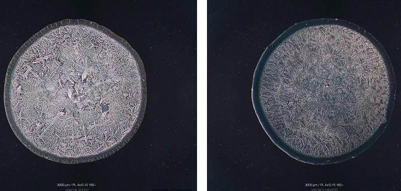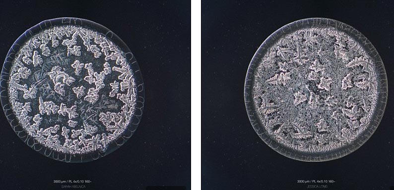 Vì các giọt nước mắt ngưng tụ thành muối nên chúng trông cũng rất khác biệt khi kết tinh và được quan sát dưới kính hiển vi. Cấu trúc của chúng trong các bức ảnh chủ yếu là muối kết tinh, với hình dạng khác biệt do bối cảnh hình thành và khô đi.