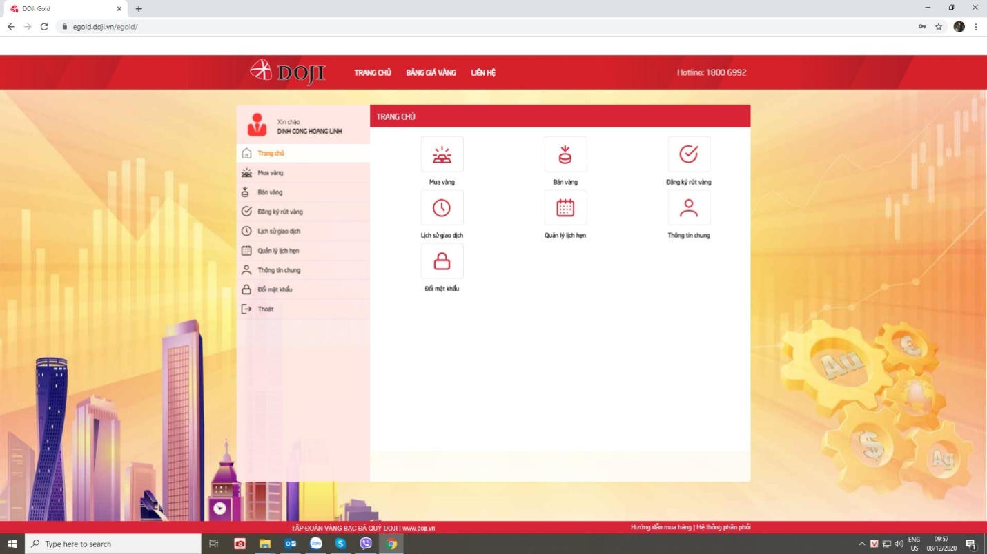 Bước 2: Đặt lệnh mua/bán vàng
