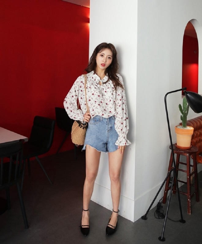 Với những chiếc áo blouse dáng babydoll, cách diện dễ yêu nhất chắc chắn là phối cùng shorts ngắn theo phong cách "giấu quần" và xỏ thêm giày đế cói. Liệu có cô nàng "bánh bèo" nào không kết một set đồ vừa khiến chân trông dài hơn lại vừa cute hết nấc như thế này?