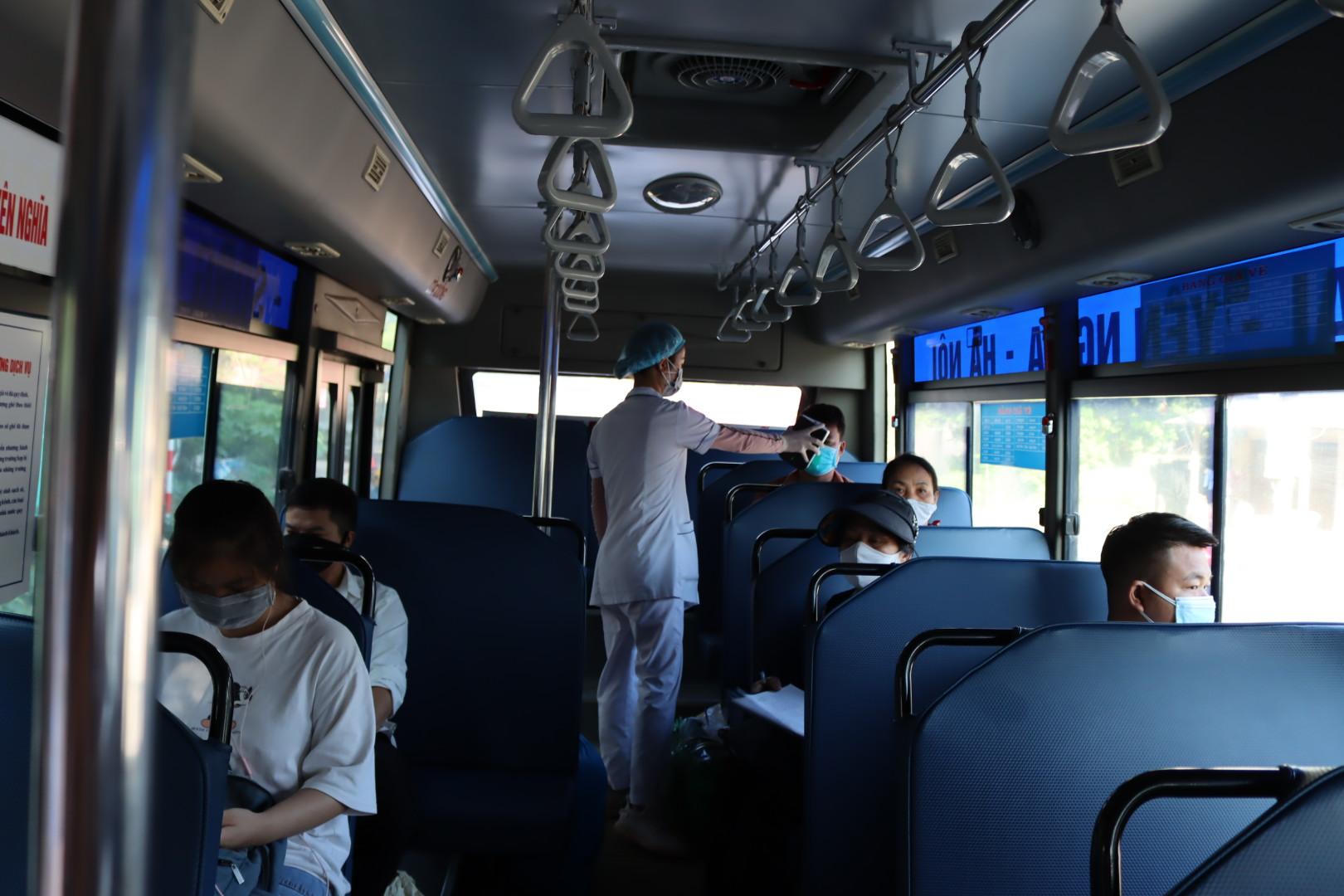 Đối với phương tiện vận tải hành khách, lực lượng tại chốt sẽ yêu cầu giữ khoảng cách trên xe và đo thân nhiệt từng người. |