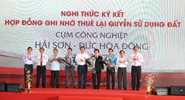 Chúc mừng những thành công của chủ đầu tư Công ty TNHH Hải Sơn và tin tưởng vào những dự án đầu tư chiến lược mà công ty đã, đang và sẽ triển khai trên địa bàn tỉnh Long An, Nguyên Chủ tịch nước Trương Tấn Sang đánh giá cao tiềm năng phát triển của CCN Hải Sơn – Đức Hòa Đông tại xã Đức Hòa Đông, huyện Đức Hòa, tỉnh Long An và tin tưởng dự án sẽ đóng góp tích cực cho quá trình công nghiệp hóa, đô thị hoá của tỉnh Long An thời gian tới. Nguyên Chủ tịch nước nhấn mạnh: “Hải Sơn cần bám chặt chỉ đạo của địa phương, đồng thời định vị đô thị hoá luôn gắn liền với hiện đại hóa”.