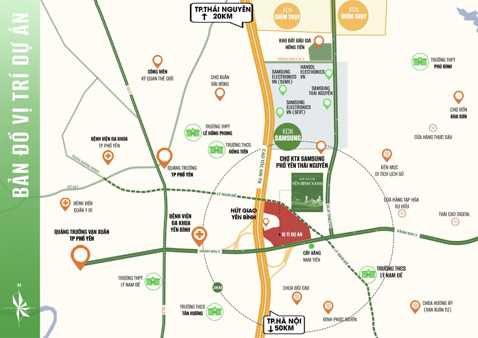 Khu đất được lựa chọn thuộc khu đô thị Yên Bình, thành phố Phổ Yên khu vực đang nổi lên như một trung tâm kinh tế - thương mại năng động bậc nhất tỉnh Thái Nguyên. Chỉ cách trung tâm Hà Nội 50km và sân bay quốc tế Nội Bài khoảng 25km, địa điểm này sở hữu vị trí chiến lược kết nối thuận tiện với Thủ đô và các tỉnh công nghiệp trọng điểm như Bắc Giang, Lạng Sơn, Vĩnh Phúc, Tuyên Quang.