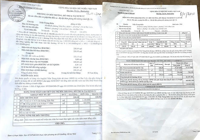 Số tiền, phương án bồi thường cũng rối rắm khiến người dân không biết đâu mà lần. Điển hình như ông Trần Hùng Hải có nhiều bảng tính chi tiết giá trị bồi thường, hỗ trợ và hai phương án bồi thường khác nhau. Có bảng chiết tính được bồi thường 1,3 tỷ đồng.