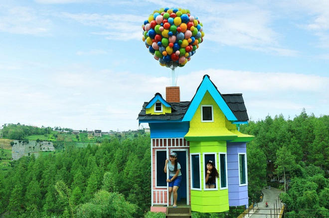 Người yêu mến các bộ phim hoạt hình thì không nên bỏ qua ngôi nhà bong bóng bay mô phỏng trong phim "Up". Cảnh tượng đồi núi xung quanh mang lại cảm giác như đang thực sự trên đường bay đến "Thác nước Thiên đường" trong phim vậy.