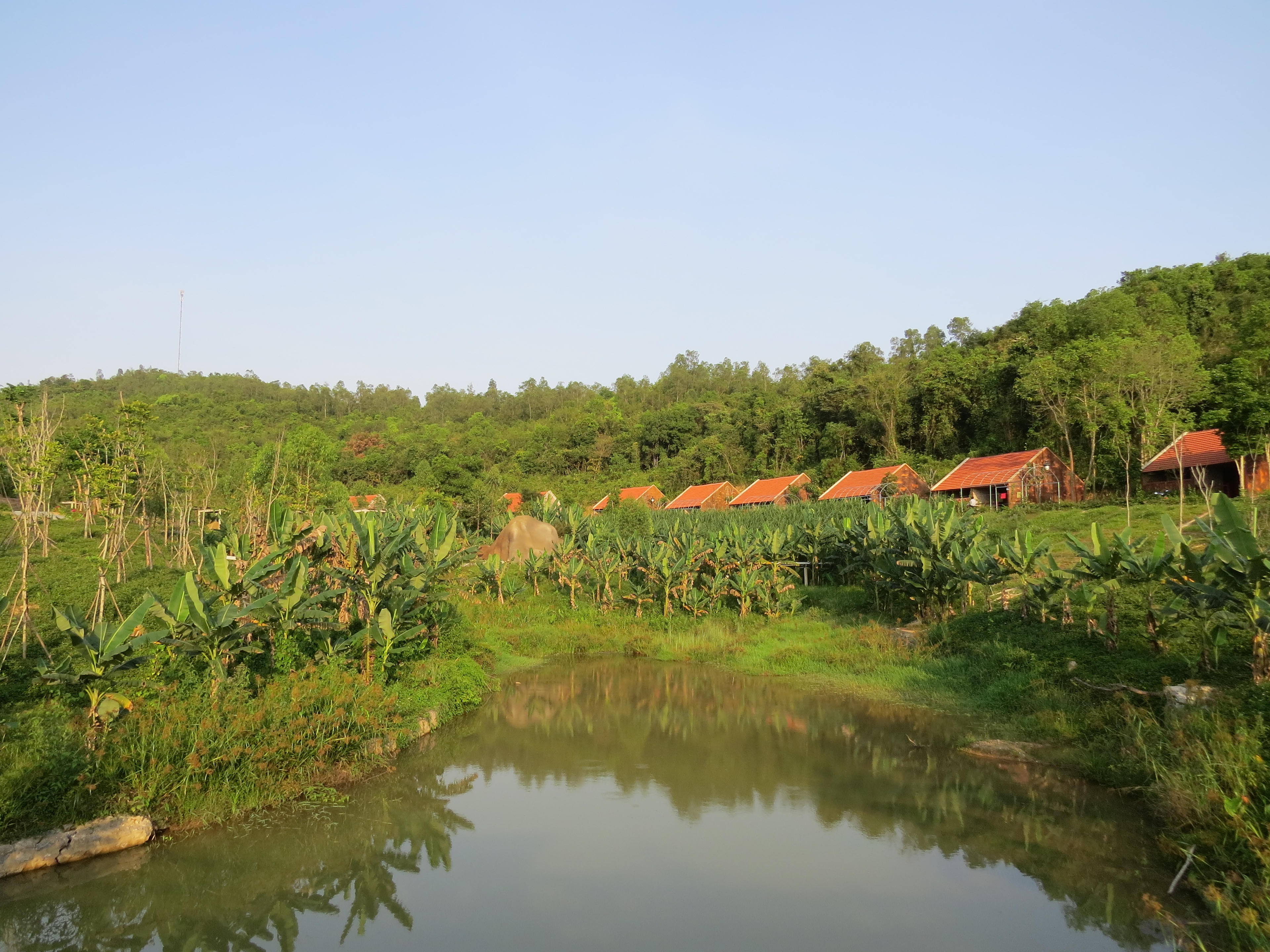 Một điều thú vị nữa là đến với khu sinh thái Mường Thanh Diễn Lâm bạn sẽ có những xúc cảm thú vị khi được quay ngược thời gian về hơn 10 thế kỷ trước trong không gian của ngôi làng Việt cổ với những ngôi nhà được làm từ bùn trộn rơm, mái lá cùng những vật dụng chỉ có thể có trong câu chuyện cổ tích.