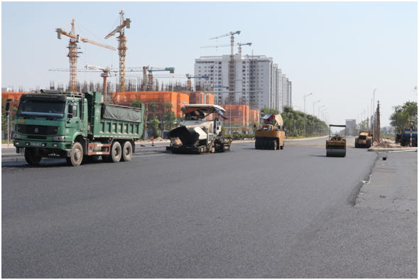 Những ngày này, người dân Khu đô thị Mường Thanh Thanh Hà đã quá quen với những đoàn xe tấp nập, tinh thần lao động khẩn trương trên tuyến đường trục này.