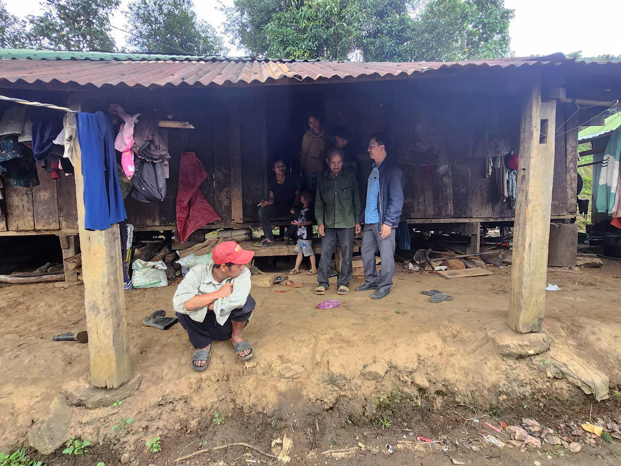 Cán bộ địa phương tới làng cũ động viên người dân quay lại khu TĐC. |