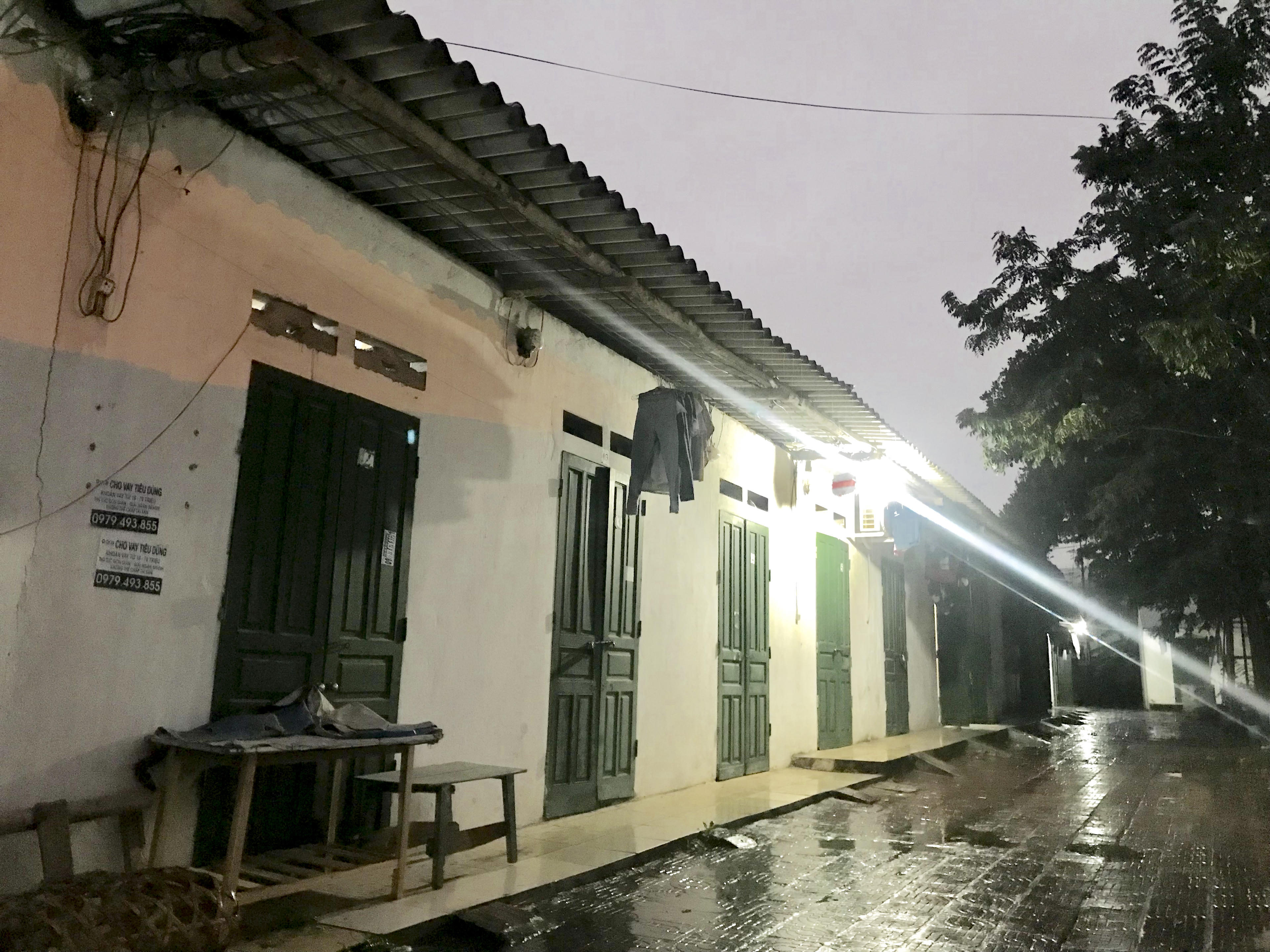 18h ngày 29/12, dãy trọ nơi có nhiều công nhân khu công nghiệp Khai Quang (Vĩnh Phúc) vắng bóng người, phần vì trời lạnh và mưa lất phất, phần vì công nhân vẫn đang cố ngủ cho đủ giấc sau những giờ tăng ca đêm mệt mỏi.