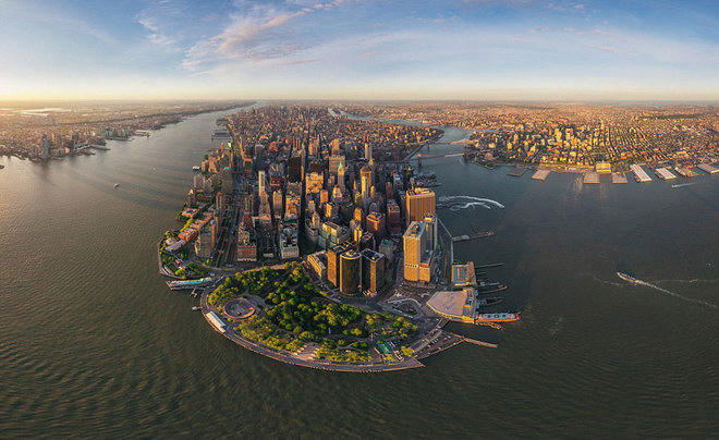 Gác lại hình ảnh sôi động, nhộn nhịp của những tòa nhà lấp lánh ánh đèn, thành phố New York, Mỹ trong ảnh như một bán đảo xanh và thơ mộng.