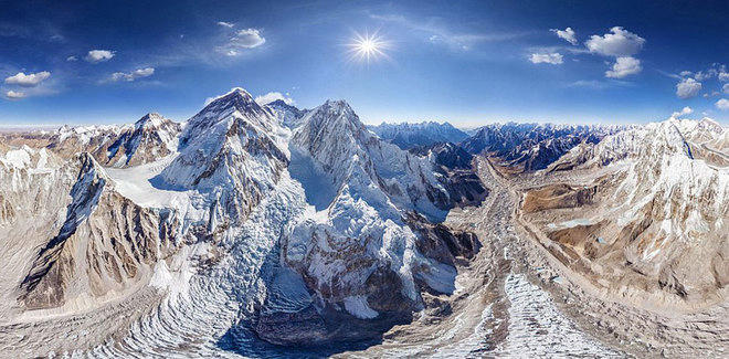 Được coi là nóc nhà thế giới, hình ảnh quen thuộc của Everest là những dãy núi trùng điệp tuyết phủ trắng xóa. Với góc nhìn này, du khách có thể ngắm trọn vẹn vẻ đẹp ngoạn mục của Everest trong một ngày nắng ấm.
