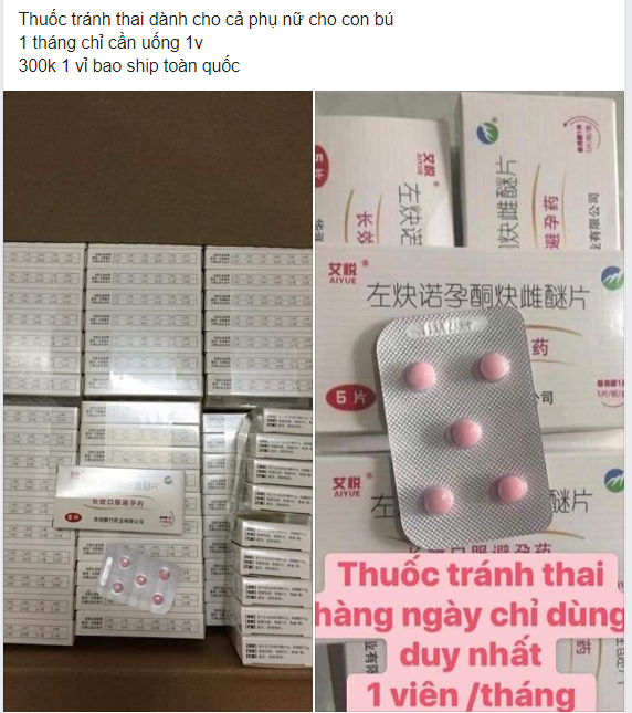 Theo quảng cáo của những người bán thì loại thuốc này có tên Aiye, xuất xứ từ Hồng Kông (Trung Quốc). Thành phần của thuốc bao gồm Levonorgestrel 6mg và Ethinylestradiol 3mg, được bào chế dưới dạng viên nén màu hồng, đóng gói theo vỉ 5 viên.
