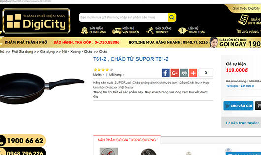 Trước đó, như PLVN đưa tin, Công ty Cổ phần Digicity tung khuyến mại “ảo” nhằm câu kéo khách hàng với rất nhiều sản phẩm có mức giá 50.000 đồng/sản phẩm, nhưng khi khách hàng hỏi mua lại được thông báo sản phẩm đã bỏ mẫu, website đang sửa chữa.