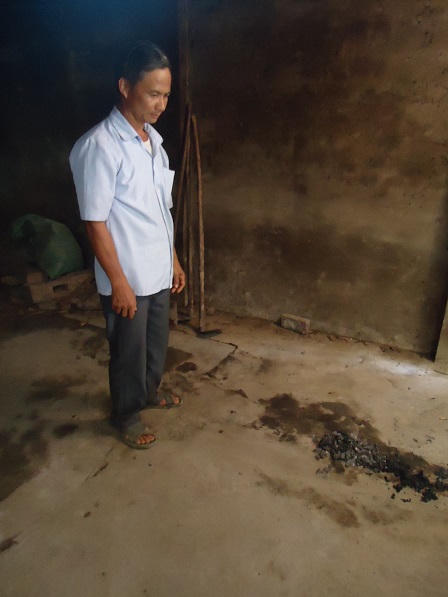 Trong ngôi nhà nạn nhân, dưới nền đất, di ảnh với khói hương nghi ngút được đặt sơ sài cùng với một đĩa hoa quả, một bát cơm trên một chiếc mâm gỗ đã cũ. Chốc chốc, người con trai cả của nạn nhân là anh Trần Văn Thiện lại lặng lẽ thắp một nén nhang cho người mẹ xấu số.