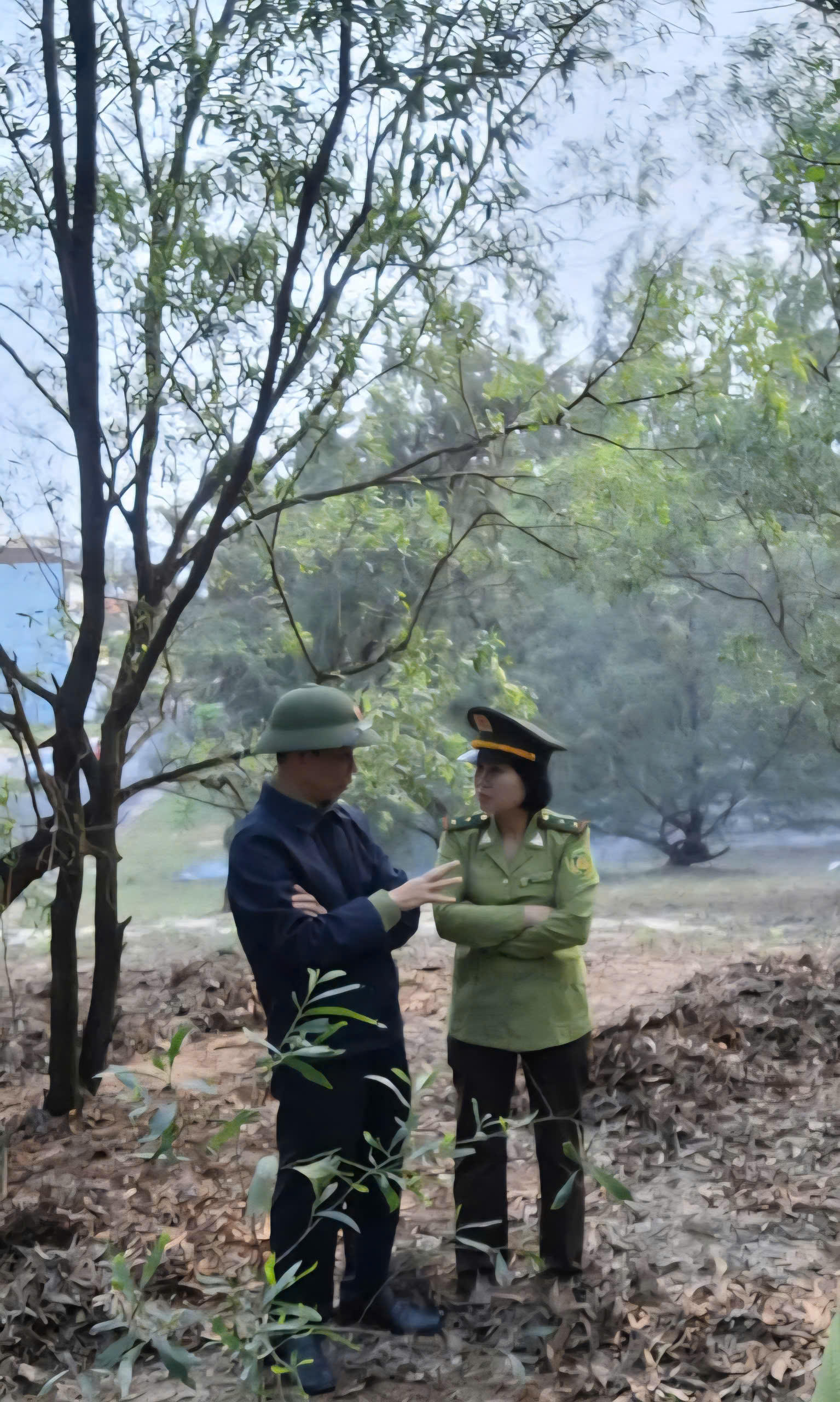 | Phút nghỉ ngơi của cán bộ bảo vệ rừng. |