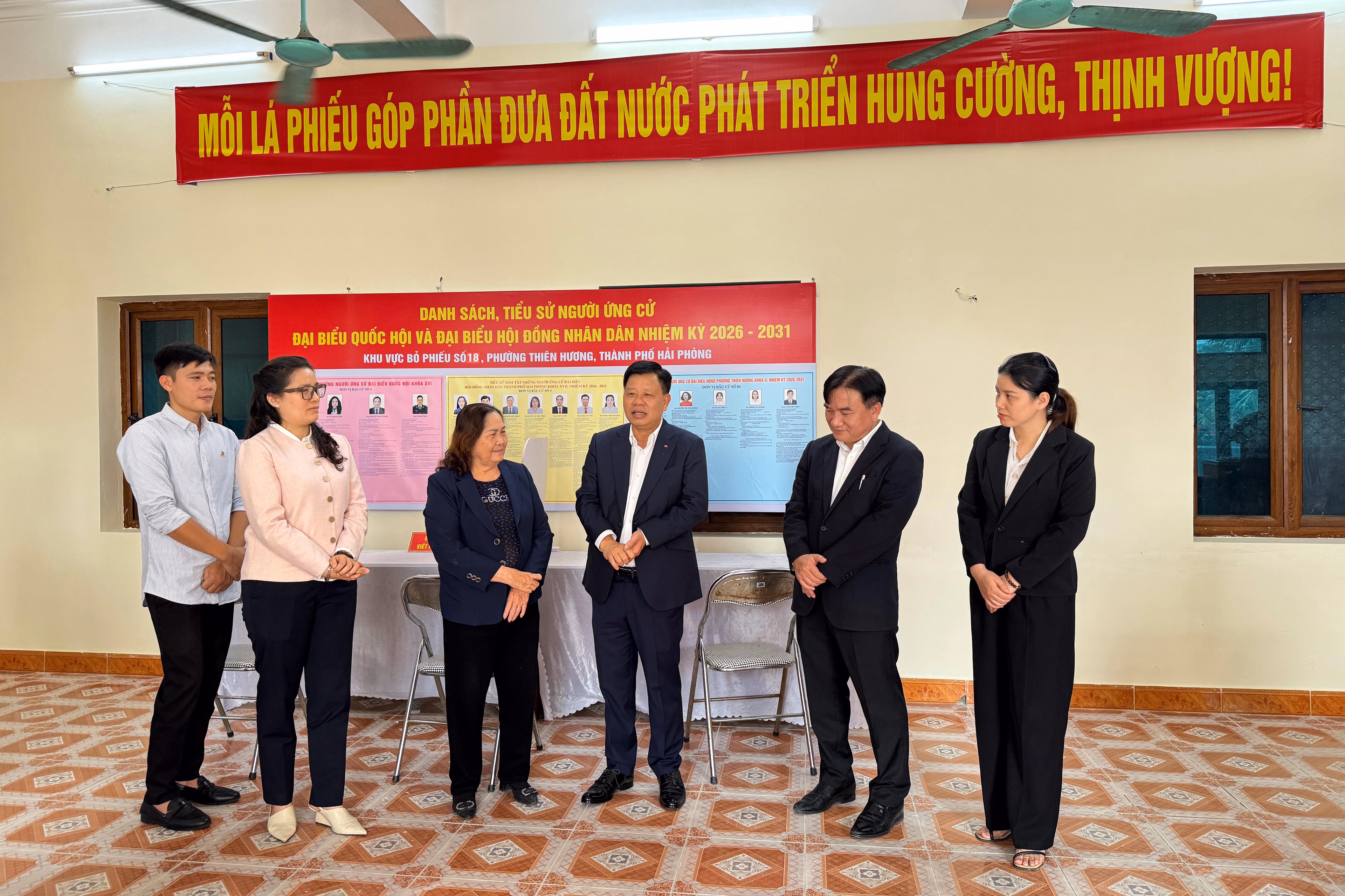 Ngày 6/3, Đoàn kiểm tra số 05 của Ủy ban bầu cử TP do Phó Chủ tịch UBND TP Lê Trung Kiên làm Trưởng đoàn đã đi kiểm tra thực tế công tác chuẩn bị bầu cử đại biểu Quốc hội khóa XVI và đại biểu HĐND các cấp, nhiệm kỳ 2026 - 2031 tại các phường: Nam Triệu, Hòa Bình, Thiên Hương và Lê Chân.