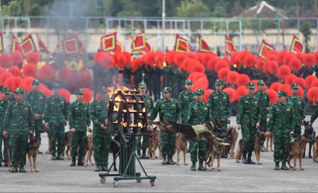 Huấn luyện từ đầu tháng 3 đến nay, đội chó nghiệp vụ được tập các bài trình diễn nâng dần độ khó. Trung tá Trần Quốc Hương, Cụm trưởng Cụm cơ động 4, Trường Trung cấp 24 Biên phòng cho biết, 3 nội dung trình diễn mở màn triển lãm gồm: Biểu diễn động tác cơ bản kỷ luật theo đội hình khối; xếp số 80 và biểu diễn vượt vòng lửa, nhảy qua vật cản. Quân khuyển được tuyển chọn từ becgie Đức và becgie Bỉ (malinois), hai dòng chó chiến đấu có sức khỏe, sức bền và đội hình đồng đều.
