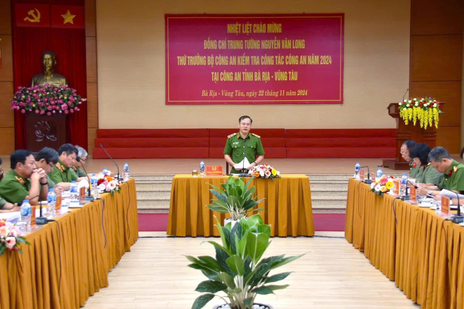 (PLVN) - Ngày 22/11, Đoàn kiểm tra số 4 của Bộ Công an do Trung tướng Nguyễn Văn Long, Thứ trưởng Bộ Công an làm trưởng đoàn tiến hành kiểm tra công tác công an tại Công an tỉnh Bà Rịa – Vũng Tàu năm 2024. Đợt kiểm tra nhằm đánh giá kết quả công tác của công an tỉnh và đề ra các giải pháp tiếp tục nâng cao hiệu quả bảo đảm an ninh trật tự trong giai đoạn mới.