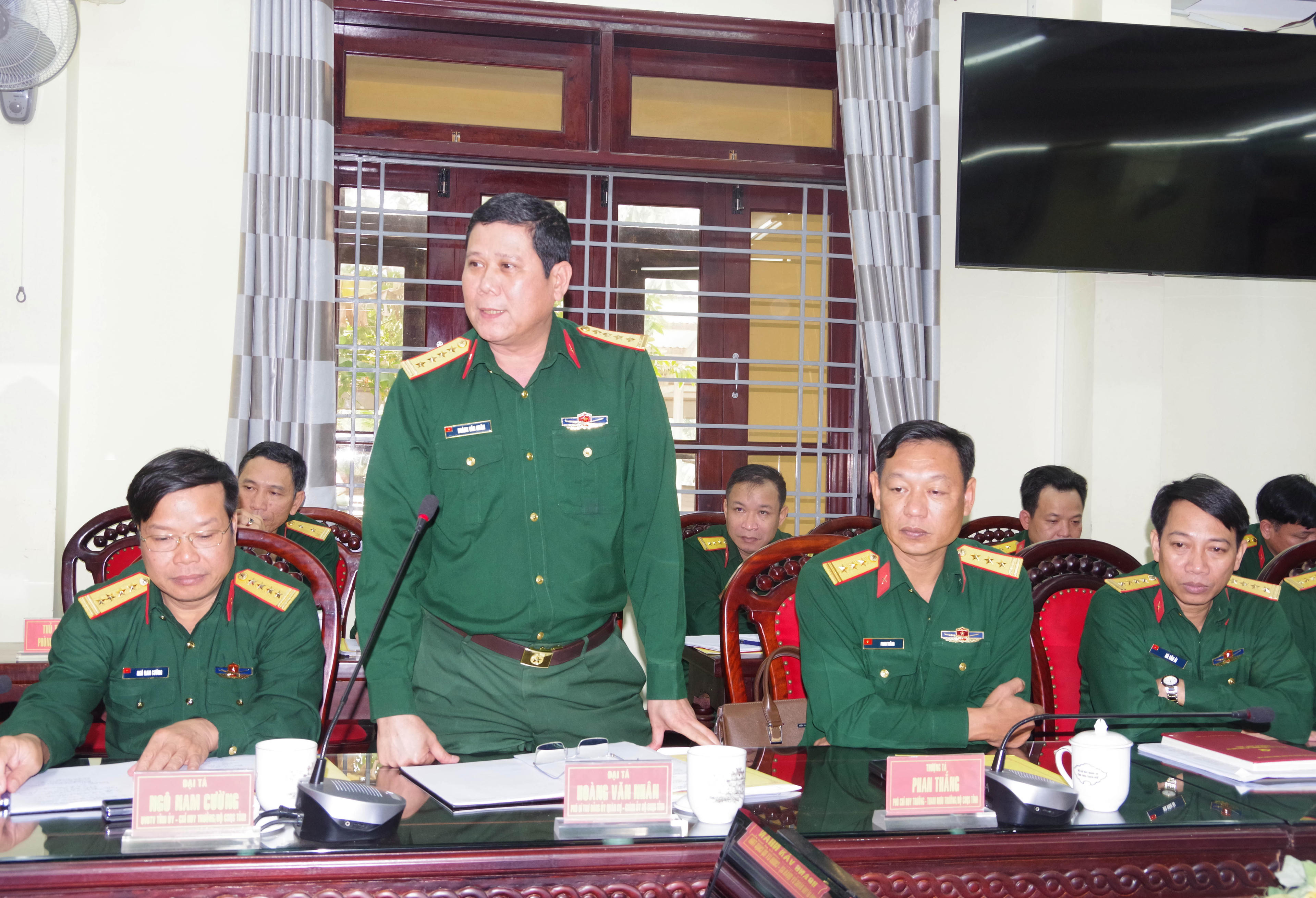 Đại tá Hoàng Văn Nhân, Chính uỷ Bộ CHQS tỉnh báo cáo kết quả hoạt động công tác Đảng, công tác chính trị của Bộ CHQS tỉnh. |