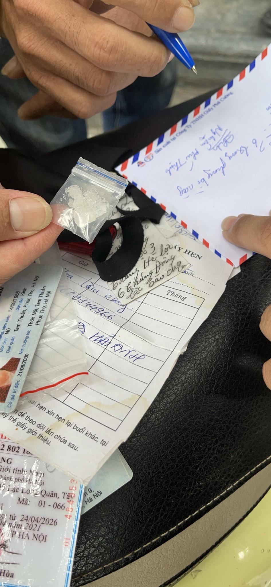 Khi lực lượng chức năng tiếp tục kiểm tra, Thịnh đã tự nguyện lấy từ trong băng đen buộc ở cổ tay phải ra 01 túi nilon màu trắng chứa tinh thể màu trắng. T khai túi chứa ma túy dạng đá, T mua về sử dụng. Tổ công tác tiến hành lập biên bản bàn giao cho Công an phường Thụy Khuê để tiếp tục xác minh làm rõ.