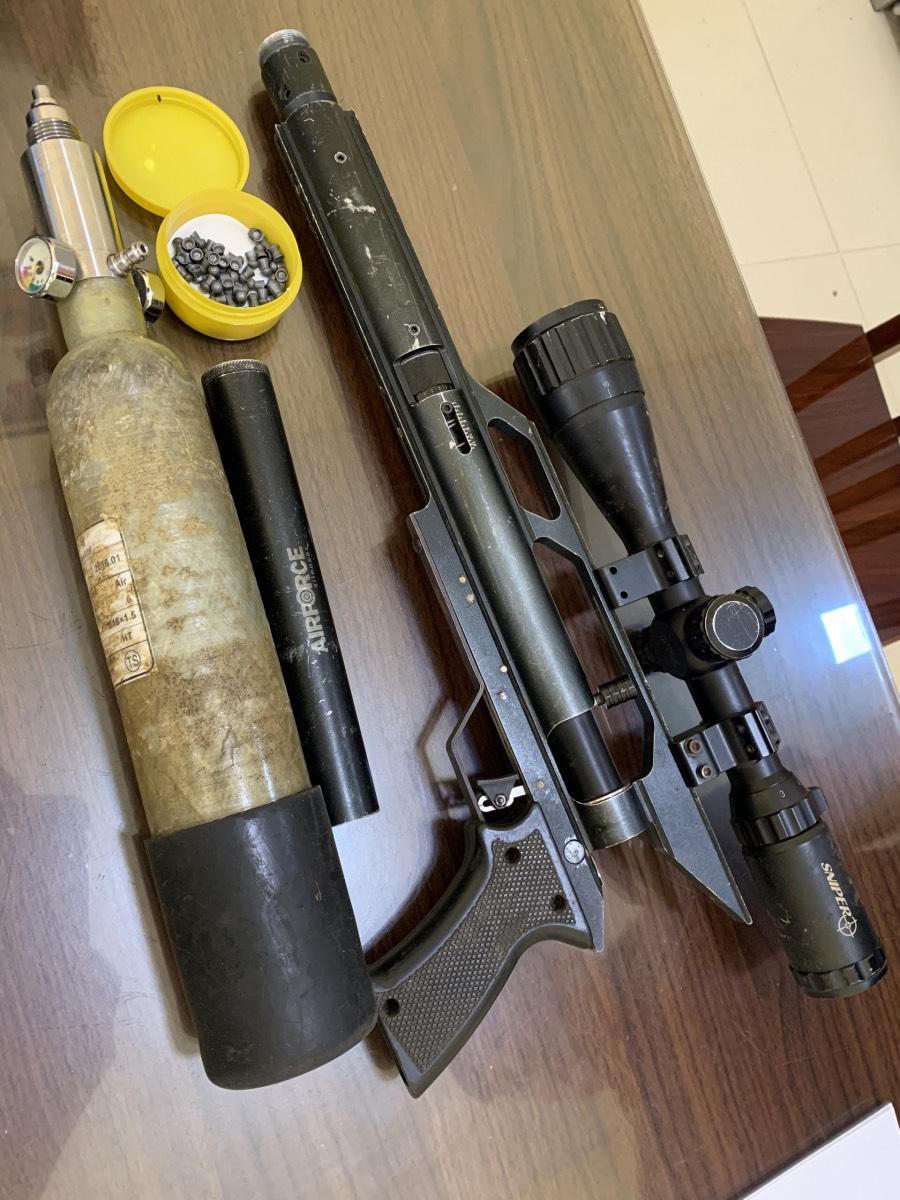 Qua kiểm tra, 3 người cho biết là đi bắn chim. Kiểm tra cốp xe, lực lượng chức năng phát hiện 1 khẩu súng hơi và 51 viên đạn chì hình nấm.