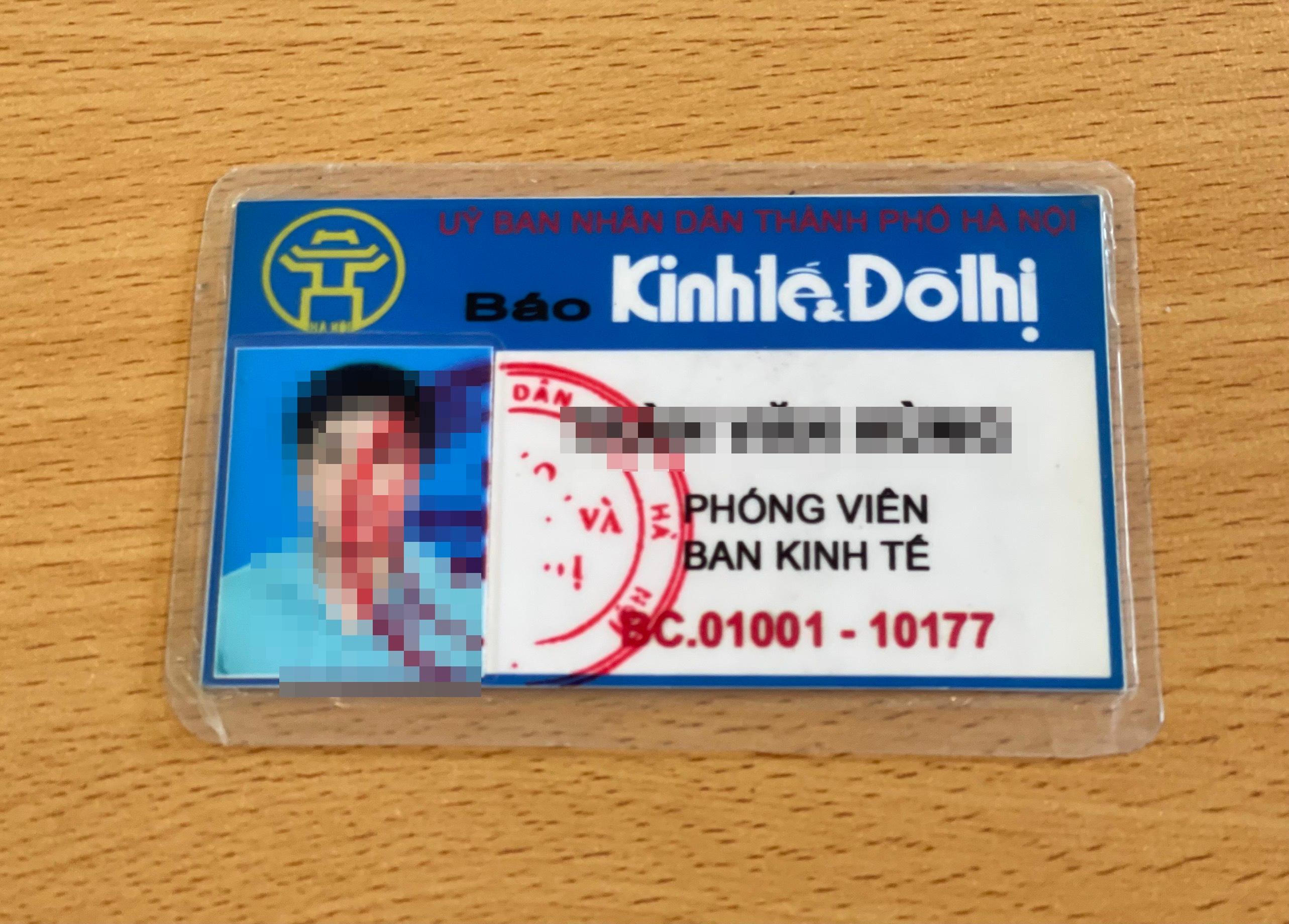 Trong quá trình kiểm tra giấy tờ, tổ công tác cũng phát hiện một thẻ ra vào ghi UBND TP Hà Nội, Phóng viên Ban Kinh tế của báo Kinh tế & Đô thị mang tên T.V.H.