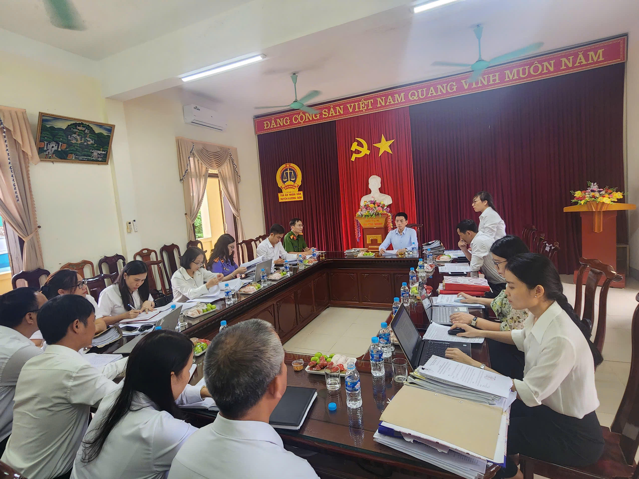 Đoàn kiểm tra tại Tòa án huyện Hương Sơn. Ảnh: PV |