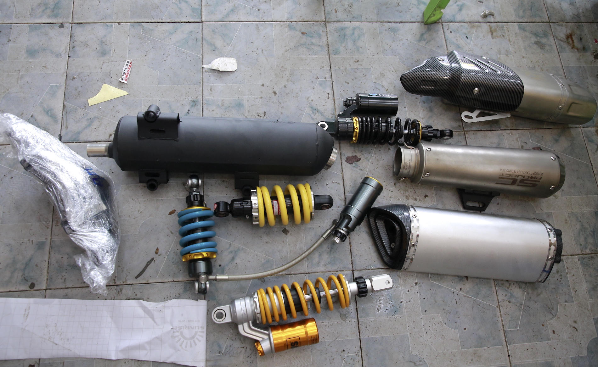 Tại thời điểm kiểm tra, lực lượng chức năng phát hiện nhiều phụ tùng dùng để độ chế xe máy cùng không rõ nguồn gốc, xuất xứ.