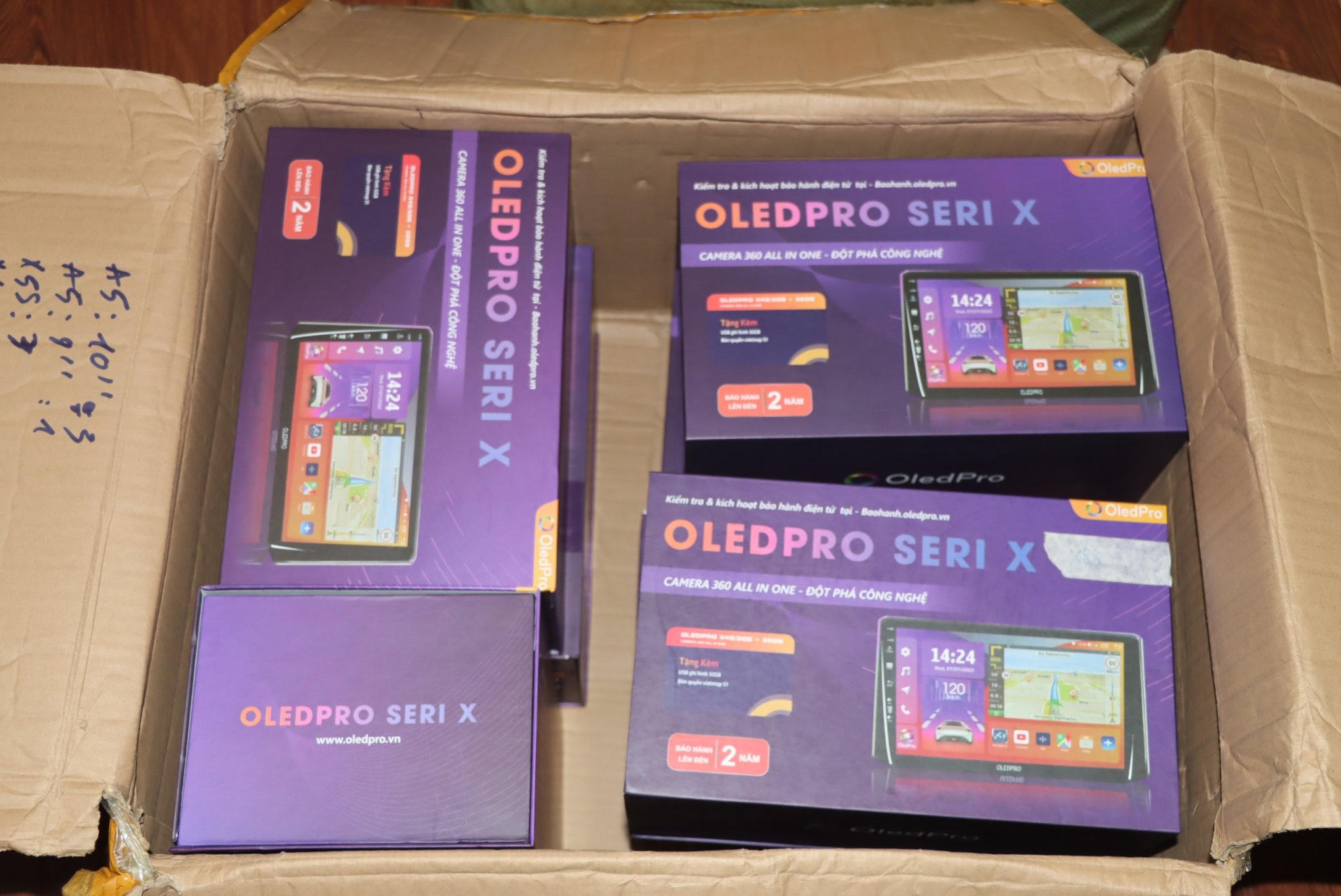 Cơ sở của ông P chủ yếu kinh doanh màn hình và camera hành trình sử dụng trên xe ô tô các nhãn hiệu Oledpro, X7 Metal Shell |